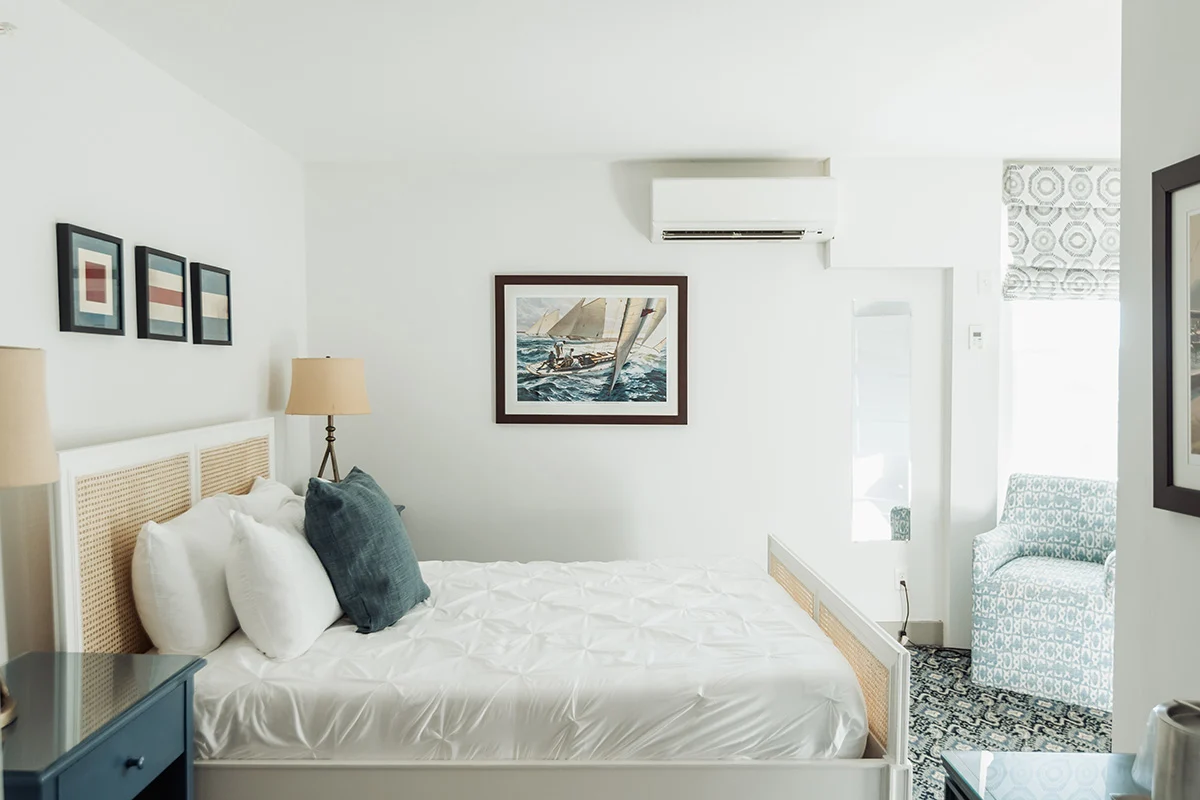 For a cozy, no-fuss stay in the heart of Mystic, the Main Inn Cozy Queen Guestrooms offer everything needed for a comfortable night. Designed with solo travelers and value-minded trips in mind, these compact rooms feature a plush queen bed and a clean, streamlined feel that makes it easy to unwind.