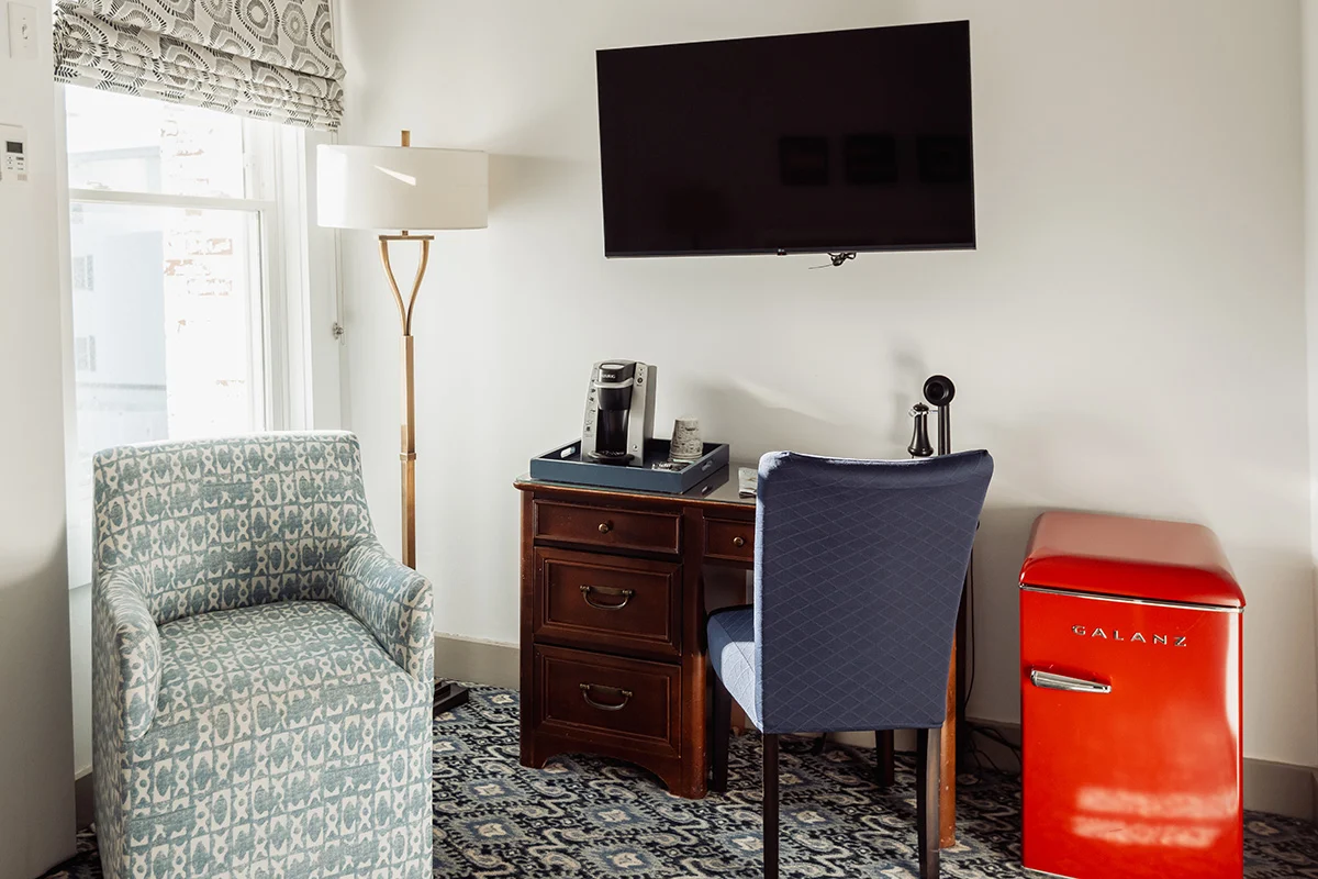 A modern single-stall shower keeps mornings simple and quick, and the room’s small footprint feels intentional, perfect for guests who plan to spend their days out exploring and want a restful place to return to each evening. It is a smart option among places to stay in Mystic when location and comfort matter most.