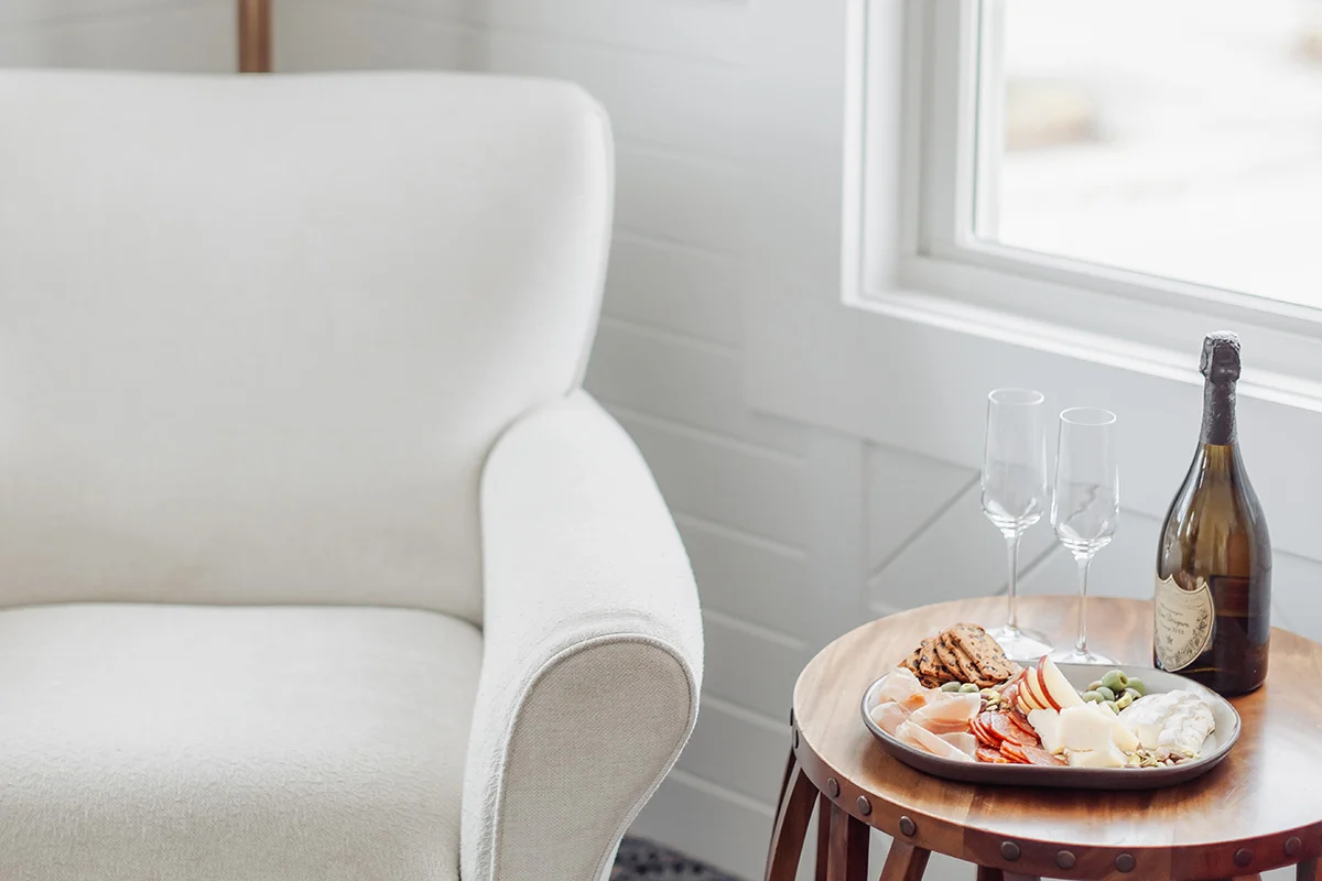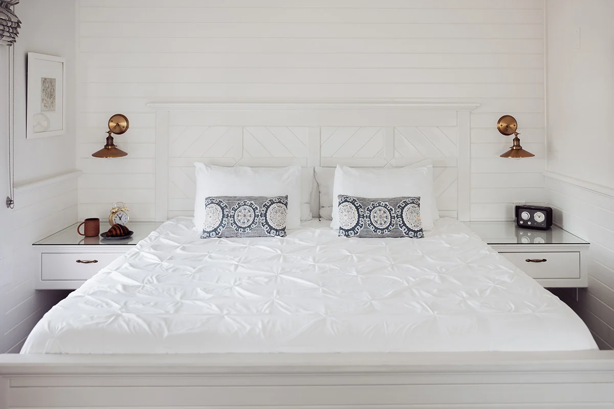 The custom-built king bed is the centerpiece, and a pull-out full-size trundle adds flexibility for a friend or older child without crowding the room. Modern amenities keep the stay easy, while the décor nods to Mystic’s waterfront spirit in a light, relaxed way that still feels polished.