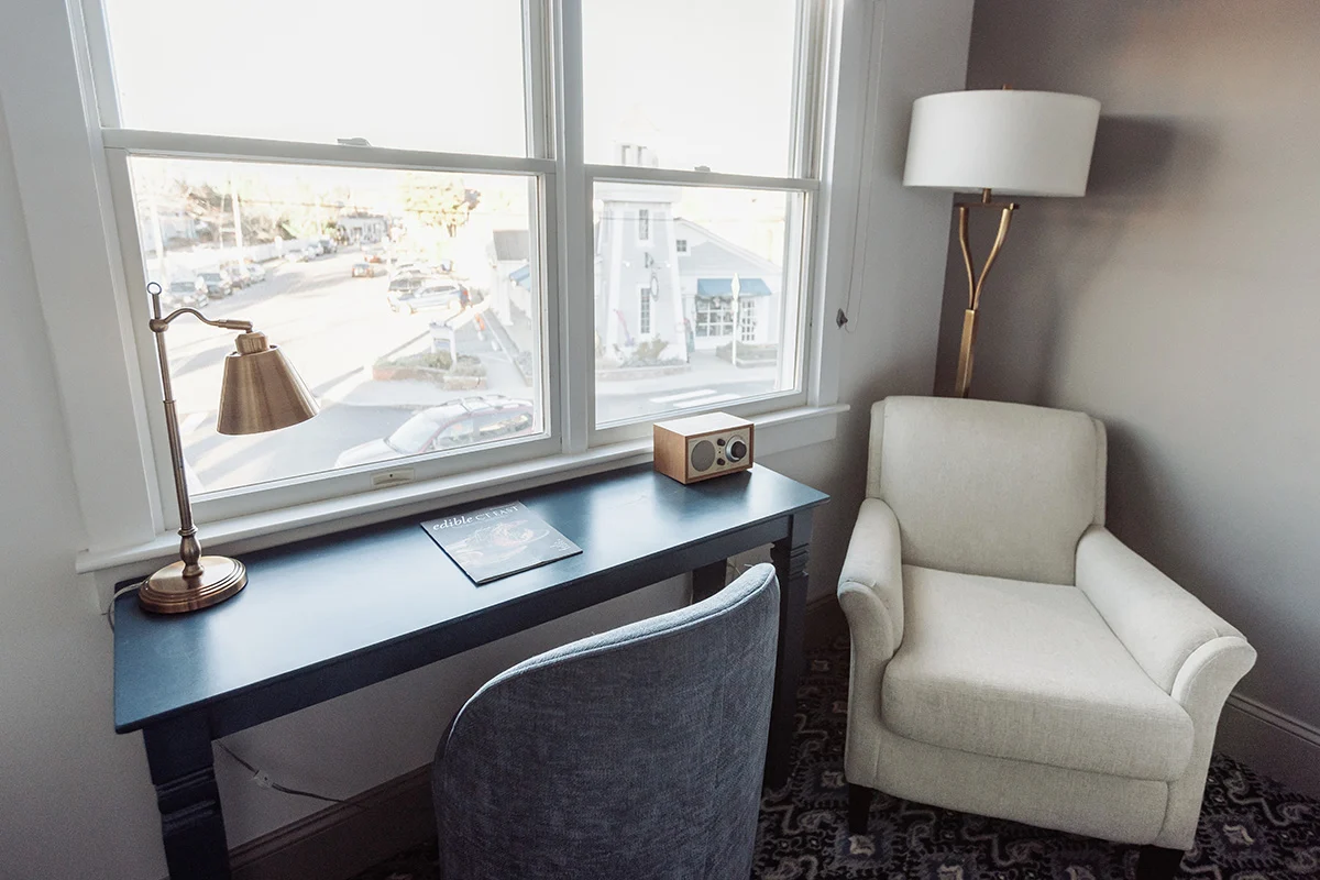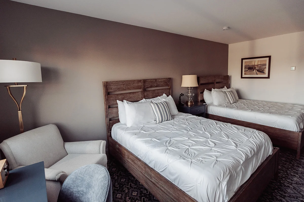 Stay together with ease in a Noank House guestroom featuring two queen beds, designed for families and small groups who want comfort and a central location. Nautical accents add a soothing coastal mood, and the layout gives everyone their own space to rest and recharge.