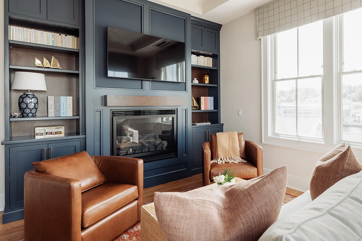 After a day of strolling the shops and waterfront, come back to a living room built for unwinding, with a gas fireplace, comfortable seating, and wide views that keep Mystic in sight, even when you are off your feet. A kitchenette and work desk add the flexibility to sip coffee slowly, catch up on a few emails, or linger over a late-night snack.
