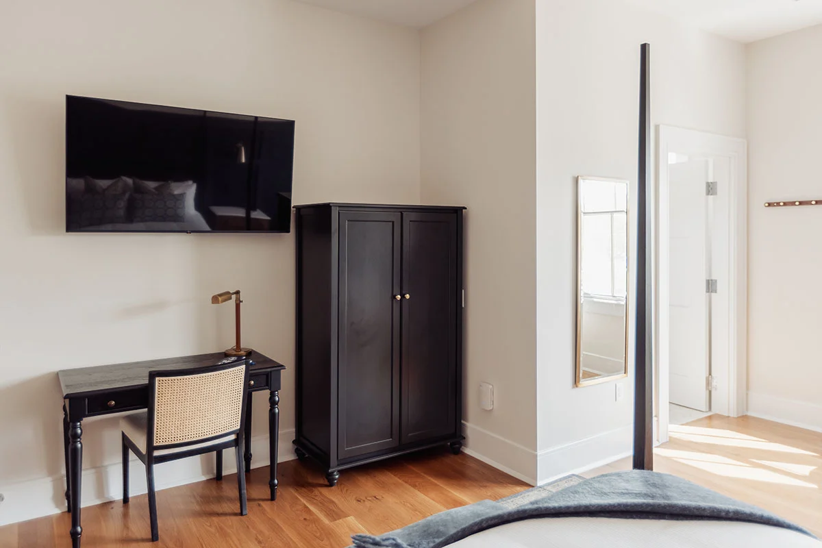 Set on the second and third floors of the newly renovated Stanton House, the Stanton Standard Guestroom offers a king bed and an easy place to recharge in the heart of downtown Mystic. It is ideal for guests who plan to spend their days out exploring and want a comfortable room to come home to each night.